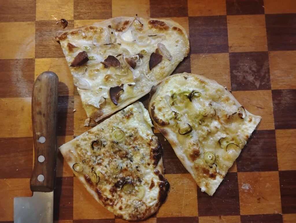 Originally, Flammkuchen was made with bread dough.